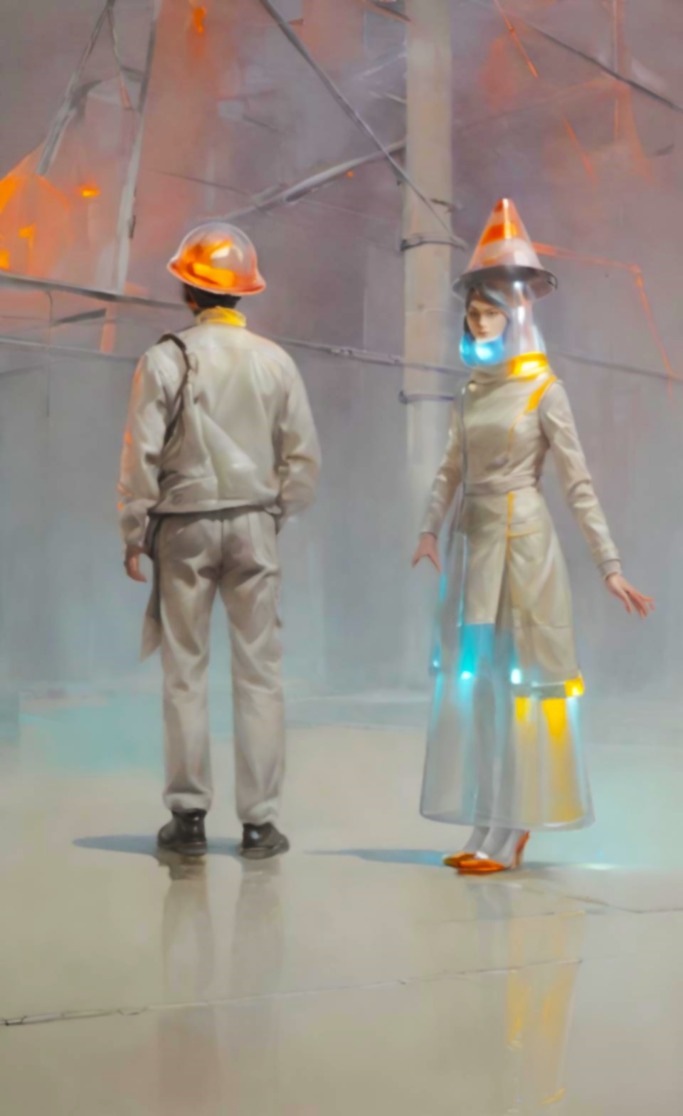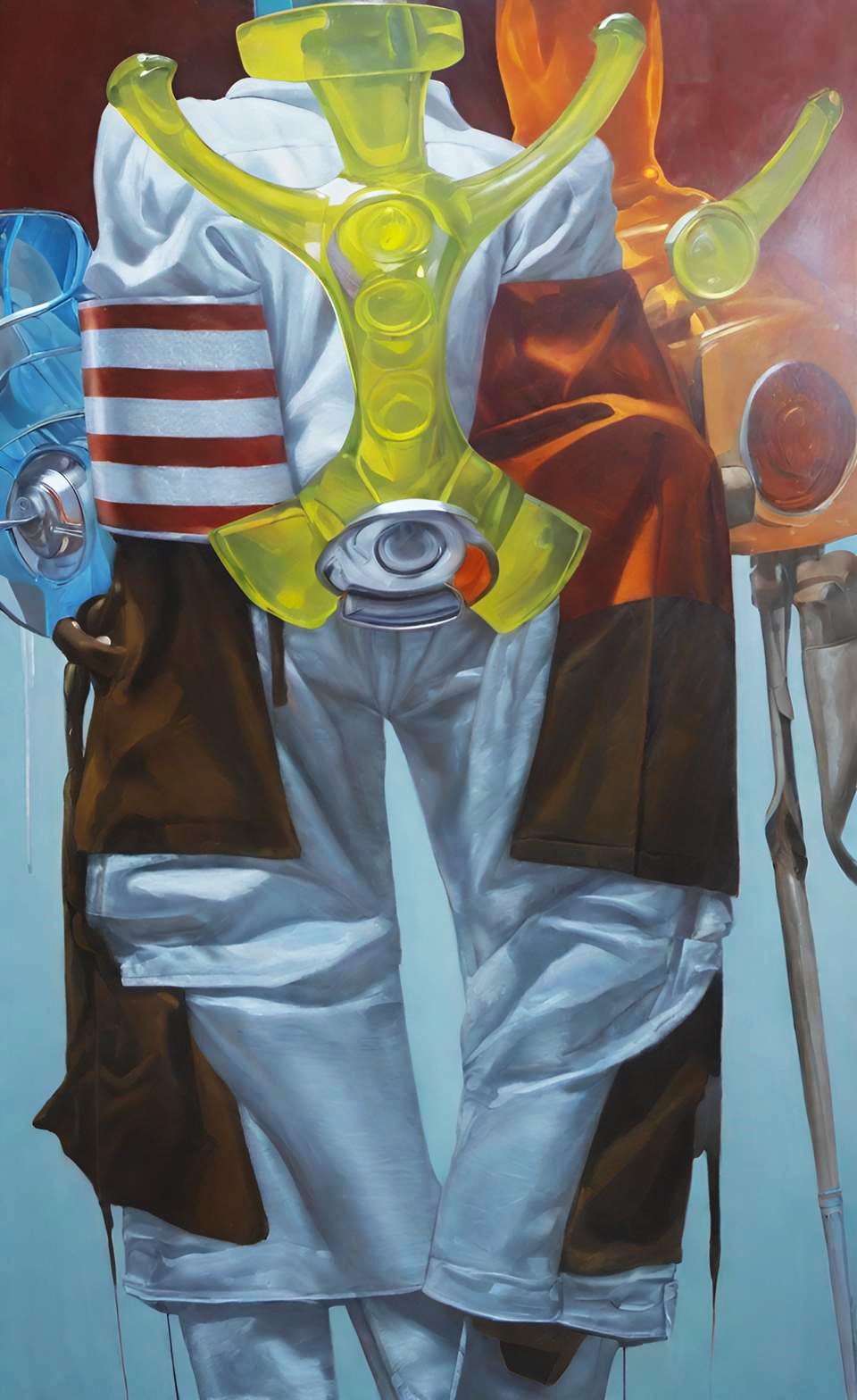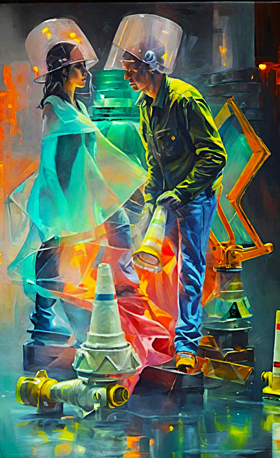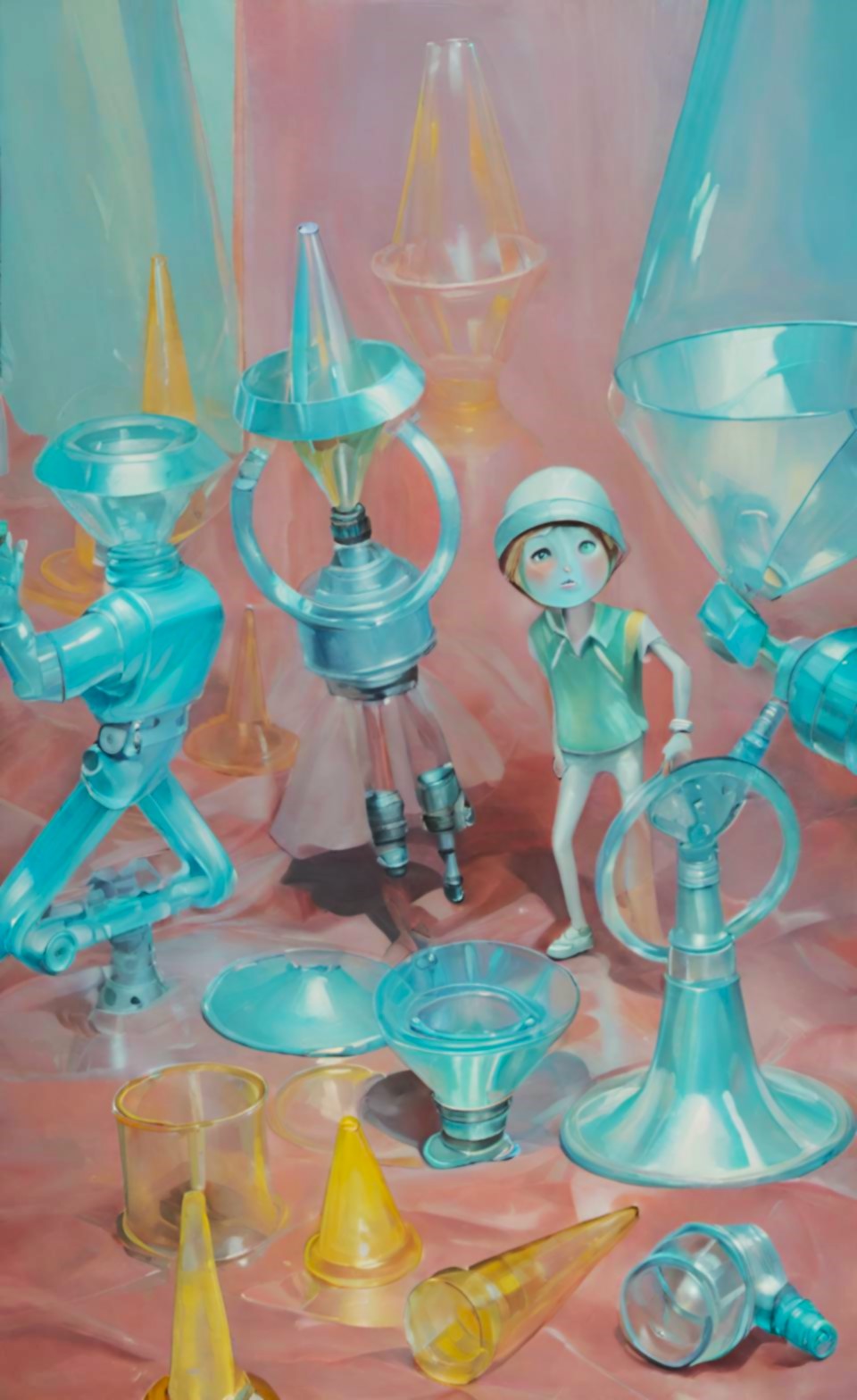 Sergide yer alan eserler, modern bireyin sınırlandırılmış varlığını, yapay düzenlerin ve yüzeysel bilgi sistemlerinin yarattığı dejenerasyonu ortaya koyar. Öne çıkan trafik konileri, bir yandan düzen ve kontrolün sembolü olarak tanıdık bir anlam taşırken, diğer yandan bireyin hem fiziksel hem zihinsel olarak sınırlandırılmasının metaforuna dönüşür. Bu nesneler, gerçekliğin yerini alan yapay bir dünyanın sınırlarını çizen soyut imgeler haline gelir.