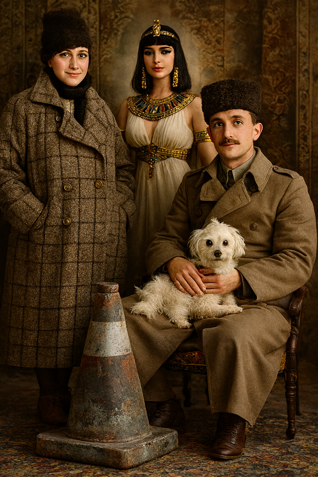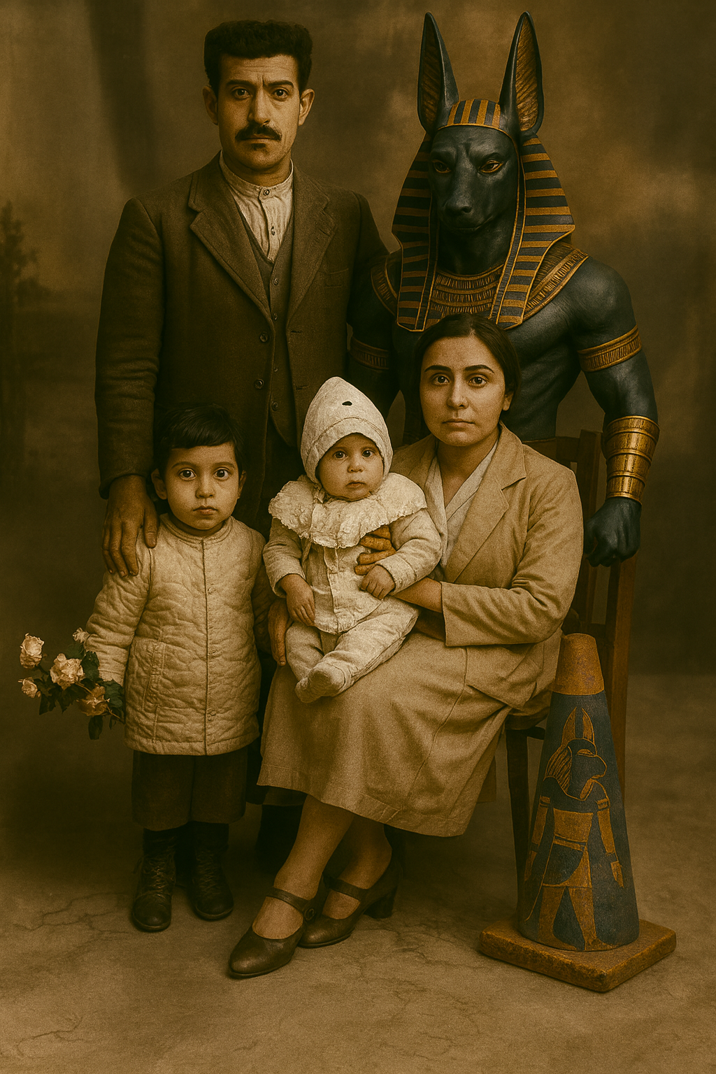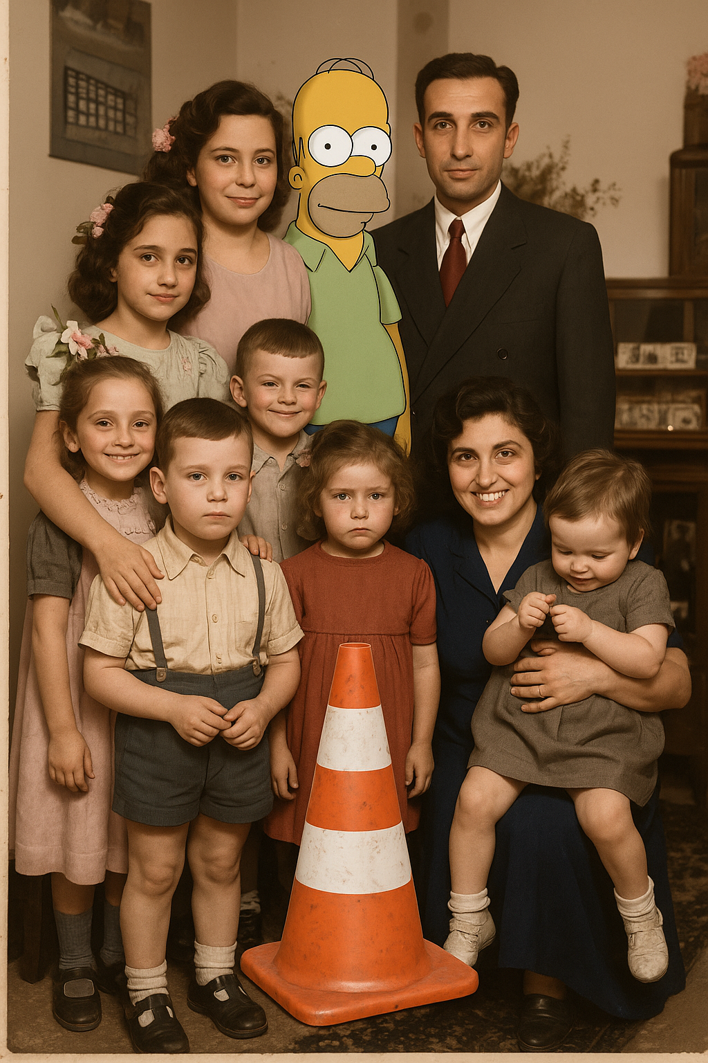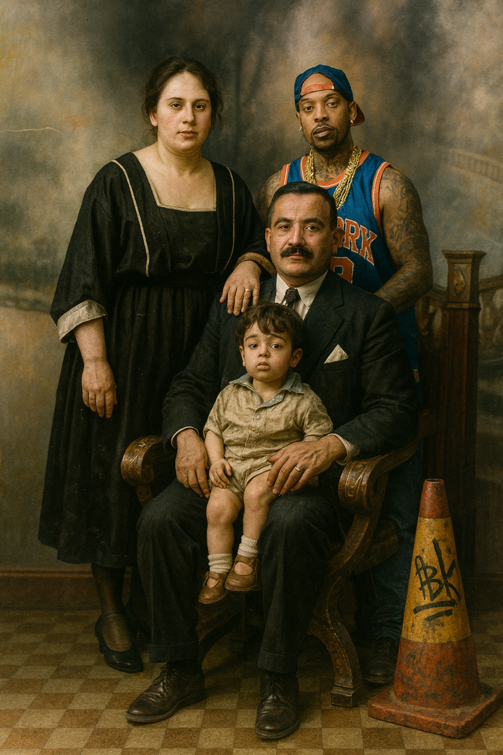Fotoğraflara eklediğim figürler; Bart Simpson’dan Dalí’ye, Göbeklitepe insanından Drakula’ya, trafik polisinden geyşaya, samuraydan Keloğlan’a, Küçük Prens’ten Abraham Lincoln’e kadar, sadece absürt bir oyun değildir. Bu karakterler aileye dair ideolojik beklentileri, tarihsel yükleri, kültürel mitleri ve görsel hafızanın sürekli genişleyen yapısını işaret eden bilinçli bir anakronik stratejidir.