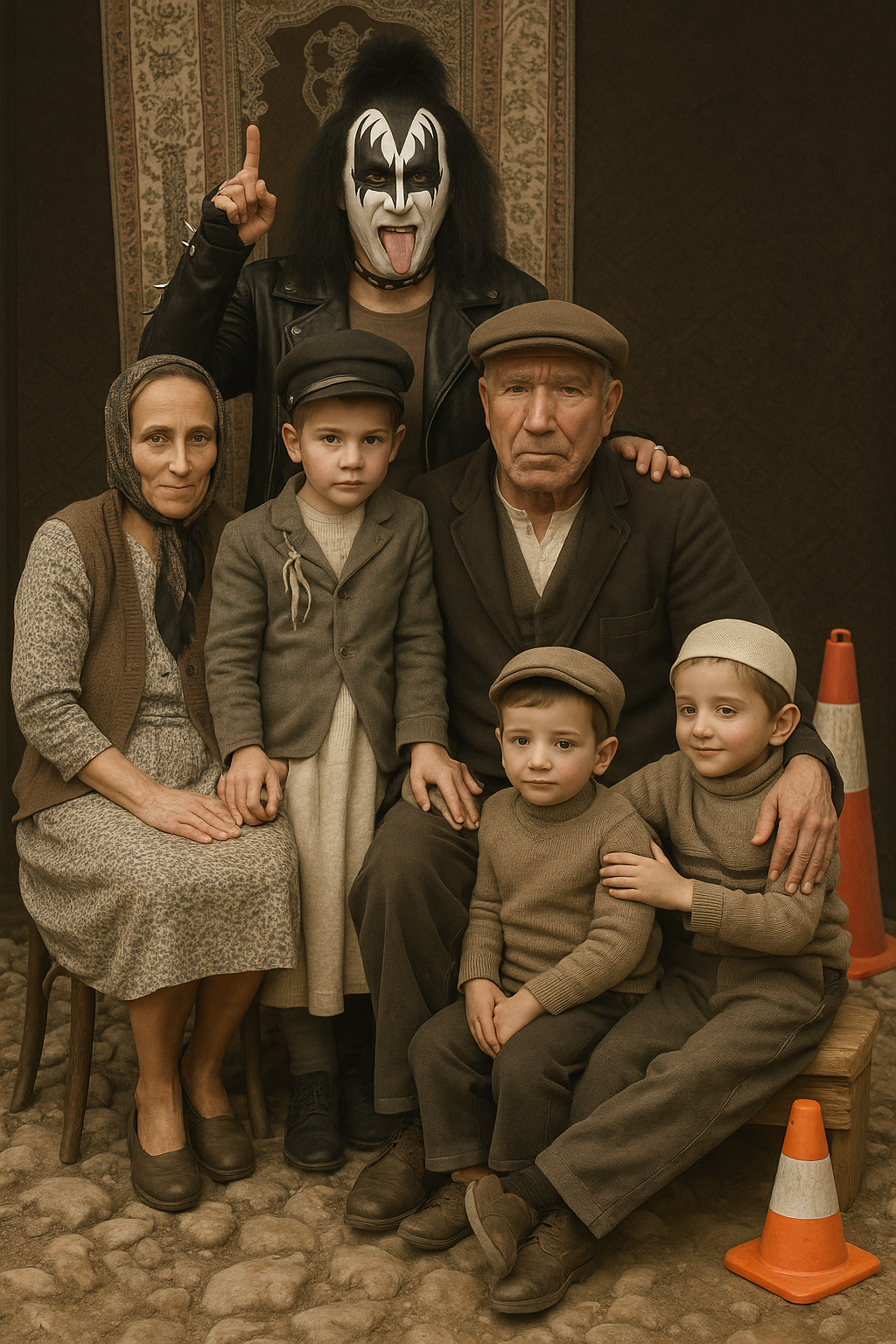 Each of these anachronic figures brings a different cultural conflict to the photograph's surface: Bart Simpson, the pop-culture rebellion that pierces domestic authority; Lincoln, the kitsch face of national heroism transformed into contemporary aesthetics; the Little Prince, the re-production of childhood innocence even within a regime of representation; the iconography of Genghis Khan and samurais, the romanticization of historical violence; the geisha figure, how the orientalist gaze is still operating; and the Göbeklitepe human, how humanity's oldest ritual memory bleeds into today's digital reading. The meeting of these figures in the same image is that moment of “short circuit,” as Žižek describes the deviation of ideology, where the stitches between reality and representation become visible.